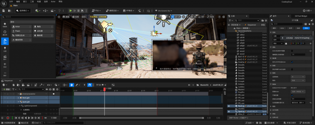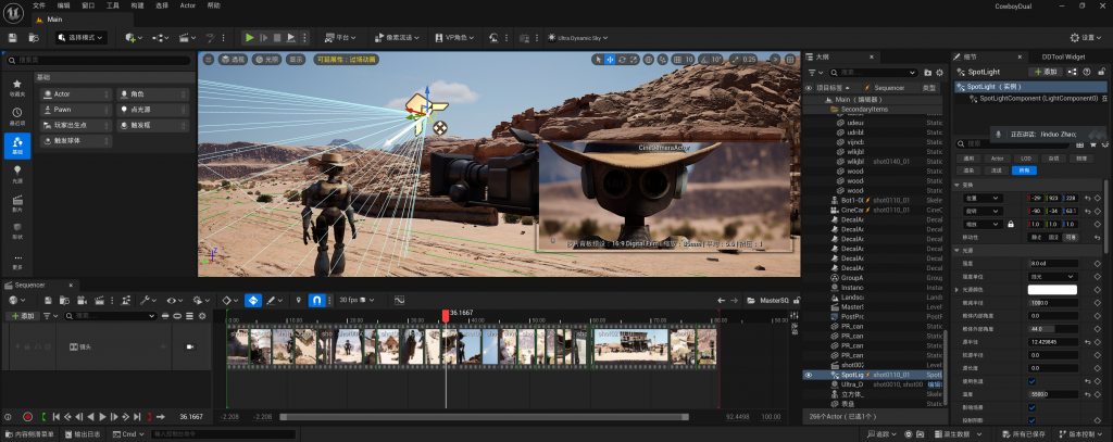 For this project, I used spotlights to enhance the sunlight coming from the direction of the sun. This ensured that the characters’ faces wouldn’t be completely obscured by shadows cast by their hats, while still maintaining the realism of the lighting. This approach allowed the facial illumination to appear natural and justified within the scene.