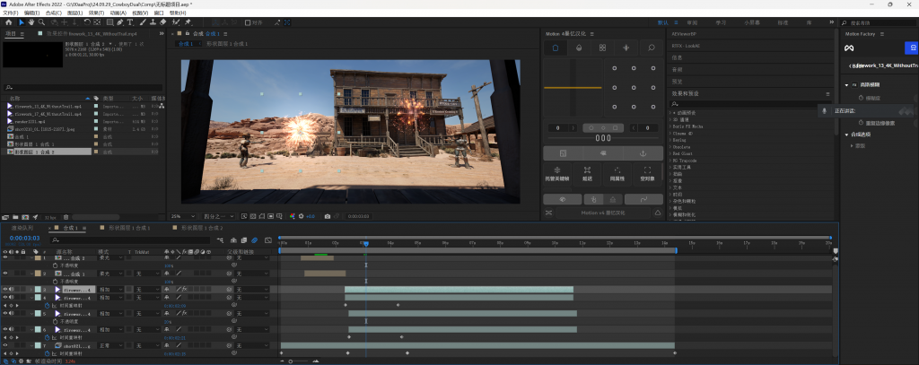 Since I needed to create particle effects but had limited knowledge of Nuke in this area, I ultimately chose After Effects as my compositing software. Although I didn’t create a particle trail effect due to time constraints, I enhanced the visual impact of the fireworks by emphasizing the glow effect.