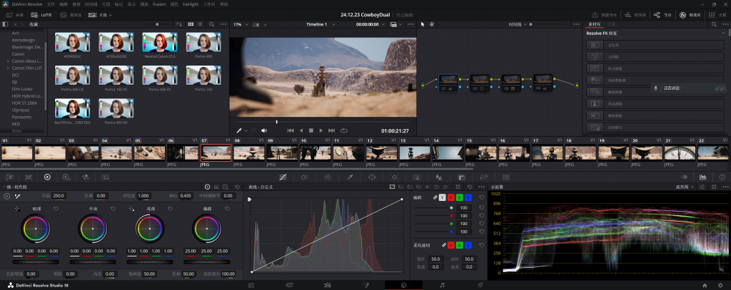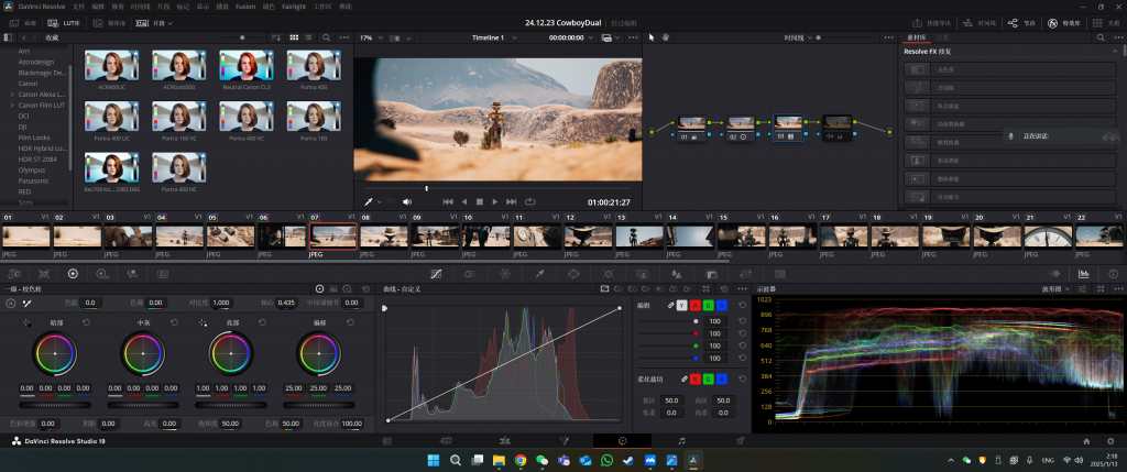 In terms of color grading, I used the Kodak Gold 200 film simulation preset from VSCO Film and baked it into a LUT. Due to time constraints on this project, I opted for a unified color grade across the timeline rather than grading each individual clip. Among the four nodes I used, the first was responsible for adjusting overall exposure, contrast, and white balance. Since I had already fine-tuned the lighting and exposure in UE5, I only made slight contrast adjustments at this stage.