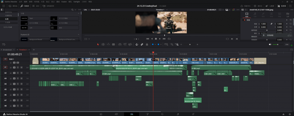 For sound effects (SFX), I primarily sourced materials from Aigei.com, incorporating background music (BGM), ambient sounds, mechanical noises, footsteps, and necessary transitional effects to enrich the film’s narrative. Notably, the BGM was a combination of three different pieces of music. By utilizing crossfades and applying music theory, I created a seamless and perfectly tailored soundtrack that complements the film.